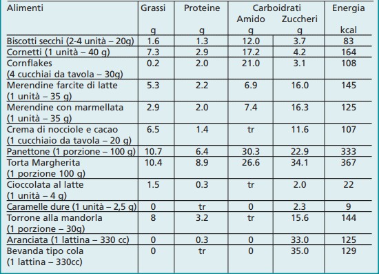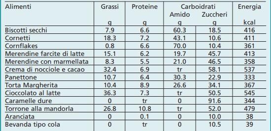 Fra gli alimenti dolci occorre fare una distinzione. Alcuni (prodotti da forno) apportano insieme agli zuccheri anche carboidrati complessi (amido) e altri nutrienti.
